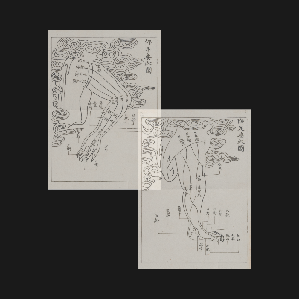 In practice, this philosophy is understood as a system. Acupuncture charts and anatomical diagrams map the body as an interconnected network, where each part is defined by its relationship to the whole.